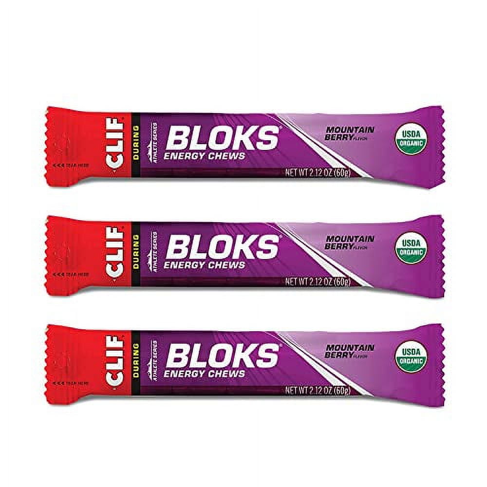 Clif Bar, Bloks Energy Chews, Mountain Berry Flavor , 18 Packets, 2.12 oz (60 g) Each 200 calories 0 g fat 100 mg sodium 40 mg potassium 48 g carbohydrates 0 g fiber 24 g sugar 0 g protein. 4.8 844 Reviews View the 844 reviews with an average rating of 4.8 out of 5 stars New! Sour Strawberry Lemonade Flavor with Caffeine